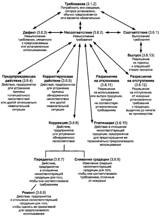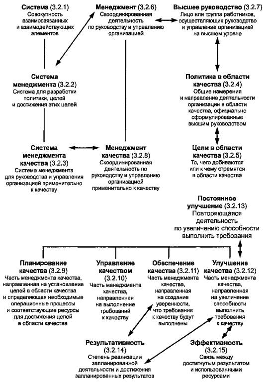 Дата введения - 2009-09-10 1 Область примененияНастоящий стандарт устанавливает основные положения систем менеджмента качества, являющихся объектом стандартов семейства ИСО 9000, и определяет соответствующие термины. Настоящий стандарт может использоваться: a) организациями, стремящимися добиться преимущества посредством внедрения системы менеджмента качества; b) организациями, которые хотят быть уверенными в том, что их заданные требования к продукции будут выполнены поставщиками; c) пользователями продукции; d) теми, кто заинтересован в едином понимании терминологии, применяемой в менеджменте качества (например, поставщики, потребители, регламентирующие органы); e) теми сторонами, внутренними или внешними по отношению к организации, которые оценивают систему менеджмента качества или проверяют ее на соответствие требованиям ИСО 9001:2000 (например аудиторы, регламентирующие органы, органы по сертификации/регистрации); f) теми сторонами, внутренними или внешними по отношению к организации, которые консультируют или проводят обучение по системе менеджмента качества для данной организации; g) разработчиками соответствующих стандартов. 2 Основные положения систем менеджмента качества2.1 Обоснование необходимости систем менеджмента качестваСистемы менеджмента качества могут содействовать организациям в повышении удовлетворенности потребителей. Потребителям необходима продукция, характеристики которой удовлетворяют их потребностям и ожиданиям. Эти потребности и ожидания, как правило, отражаются в спецификации на продукцию и обычно считаются требованиями потребителей. Требования могут быть установлены потребителем в контракте или определены самой организацией. В любом случае приемлемость продукции в конечном счете устанавливает потребитель. Поскольку потребности и ожидания потребителей меняются, а организации помимо этого испытывают давление, обусловленное конкуренцией и техническим прогрессом, они должны постоянно совершенствовать свою продукцию и свои процессы. Внедрение систем менеджмента качества побуждает организации анализировать требования потребителей, определять процессы, способствующие созданию продукции, приемлемой для потребителей, а также поддерживать эти процессы в управляемом состоянии. Система менеджмента качества может быть основой постоянного улучшения с целью увеличения повышения удовлетворенности как потребителей, так и других заинтересованных сторон. Внедрение данной системы обеспечивает организацию и потребителей уверенностью в ее способности поставлять продукцию, полностью соответствующую требованиям. 2.2 Требования к системам менеджмента качества и требования к продукцииСемейство стандартов ИСО 9000 проводит различие между требованиями к системам менеджмента качества и требованиями к продукции. Требования к системам менеджмента качества установлены в ИСО 9001:2000 и являются общими и применимыми к организациям в любых секторах промышленности или экономики независимо от категории продукции. ИСО 9001:2000 не устанавливает требований к продукции. Требования к продукции могут быть установлены потребителями или организацией, исходя из предполагаемых запросов потребителей или требований технических регламентов. Требования к продукции, и в ряде случаев также к связанным с ней про