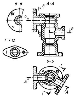 Если при этом секущие плоскости направлены под различными углами (см. рисунок 38), то условное графическое обозначение