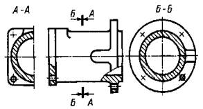 Рисунок 16 6.4 Разрезы бывают продольными (см. рисунок 17) и поперечными, если секущие плоскости направлены перпендикулярно к длине или высоте предмета (например, разрезы А-А и Б-Б, рисунок 18).