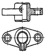 Допускаются упрощения, подобные указанным на рисунках 54-57. 9.6 Детали, такие как винты, заклепки, шпонки, непустотелые валы и шпиндели, шатуны, рукоятки и т.п., при продольном разрезе показывают нерассеченными. Шарики всегда показывают нерассеченными. Как правило, показывают нерассеченными на сборочных чертежах гайки и шайбы. Элементы, такие как спицы маховиков, шкивов, зубчатых колес, тонкие стенки типа ребер жесткости и т.п., показывают незаштрихованными, если секущая плоскость направлена вдоль оси или длинной стороны такого элемента. Если в подобных элементах детали имеется местное сверление, углубление и т.п., то делают местный разрез, как показано на рисунках 21, 22. 9.7 Пластины, а также элементы деталей (отверстия, фаски, пазы, углубления и т.п.) размером (или разницей в размерах) не более 9.8 Незначительную конусность или уклон допускается изображать с увеличением. Если уклон или конусность отчетливо не выявляются, например главный вид на рисунке 56 или вид сверху на рисунке 57, то на изображениях проводят только одну линию, соответствующую меньшему размеру элемента с уклоном или меньшему основанию конуса. 9.9 При необходимости выделения на чертеже плоских поверхностей предмета на них проводят диагонали сплошными тонкими линиями (см. рисунок 58).