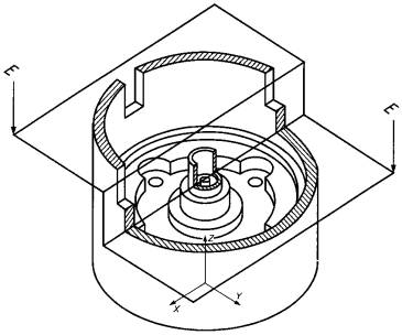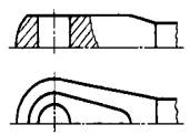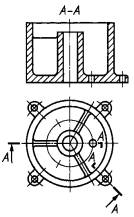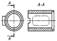 Рисунок 39 7.9 Если секущая плоскость проходит через ось поверхности вращения, ограничивающей отверстие или углубление, то контур отверстия или углубления в сечении показывают полностью (см. рисунок 40).