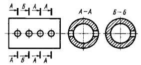 Рисунок 35 7.7 Для нескольких одинаковых сечений, относящихся к одному предмету, линию сечения обозначают одной буквой и вычерчивают одно сечение (см. рисунки 36, 37).