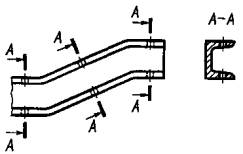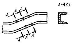 Рисунок 38 Когда расположение одинаковых сечений точно определено изображением или размерами, допускается наносить одну линию сечения, а над изображением сечения указывать количество сечений. 7.8 Секущие плоскости выбирают так, чтобы получить нормальные поперечные сечения (см. рисунок 39).