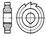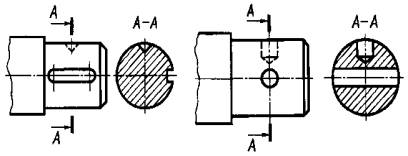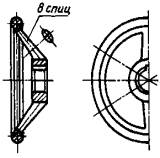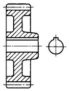 в) для показа отверстия в ступицах зубчатых колес, шкивов и т. п., а также для шпоночных пазов вместо полного изображения детали давать лишь контур отверстия (см. рисунок 65) или паза (см. рисунок 55);