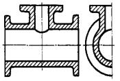 9.4 На видах и разрезах допускается упрощенно изображать проекции линий пересечения поверхностей, если не требуется точного их построения. Например, вместо лекальных кривых проводят дуги окружности и прямые линии (см. рисунки 46, 47).
