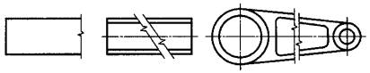 Рисунок 58 9.10 Предметы или элементы, имеющие постоянное или закономерно изменяющееся поперечное сечение (валы, цепи, прутки, фасонный прокат, шатуны и т.п.), допускается изображать с разрывами. Частичные изображения и изображения с разрывами ограничивают одним из следующих способов: а) сплошной тонкой линией с изломом, которая может выходить за контур изображения на длину 2-