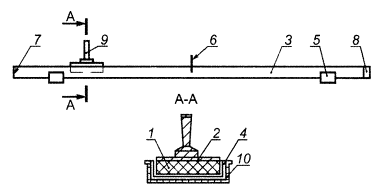 плексигласа размером 100 × Бумага белая писчая по ГОСТ 18510. Калька бумажная по ГОСТ 892. Бумага папиросная по ГОСТ 3479. Бумага миллиметровая по ГОСТ 334. Палочка стеклянная по ГОСТ 23932 с оплавленным концом. Примечание - Допускается применение средств измерений и оборудования с такими же или лучшими метрологическими и техническими характеристиками, а также материалов по качеству не ниже вышеуказанных. 6.1.2. Подготовка к проведению испытания Магнитную индукцию постоянного подковообразного магнита проверяют периодически, не реже одного раза в 3 мес. При ее ослаблении до значения менее 120 мТл подковообразный магнит должен быть подмагничен или заменен на новый. 6.1.3. Проведение испытания 6.1.3.1. Из средней пробы