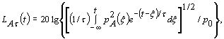 где τ - экспоненциальная постоянная времени для временных характеристик F или S, с; ξ - переменная интегрирования от некоторого времени в прошлом, которое обозначено -¥ как нижний предел интегрирования, до времени наблюдения t; pA(ξ) - мгновенное корректированное по А звуковое давление; p0 - опорное звуковое давление. В формуле (1) числитель аргумента под знаком логарифма - экспоненциально взвешенное среднеквадратичное корректированное по А звуковое давление в момент наблюдения t. 5 На рисунке 1 представлена последовательность обработки сигнала, описываемая формулой (1).