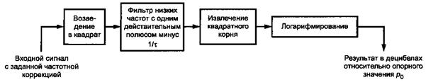 Рисунок 1 - Последовательность обработки сигнала при формировании показаний уровня звука с временной коррекцией 3.6 максимальный уровень звука с временной коррекцией (maximum time-weighted sound level), дБ: Наибольший на заданном интервале времени уровень звука с временной коррекцией. Примечание - Рекомендуемые обозначения максимального уровня звука с временной коррекцией: Laf max, Las max, Lcf max и LCs max для частотных коррекций по A и С и временных характеристик F и S. 3.7 пиковое звуковое давление (peak sound pressure): Наибольшее абсолютное мгновенное звуковое давление на заданном интервале времени. 3.8 пиковый корректированный по С уровень звука LCpeak (peak sound level), дБС: Двадцать десятичных логарифмов отношения пикового корректированного по С звукового давления к опорному звуковому давлению. 3.9 средний по времени уровень звука (time-average sound level), эквивалентный непрерывный уровень звука (equivalent continuous sound level), дБ: Двадцать десятичных логарифмов отношения среднеквадратичного значения звукового давления в течение указанного интервала времени к опорному звуковому давлению, при условии, что звуковое давление получено со стандартной частотной коррекцией. Примечания 1 Средний по времени корректированный по A уровень звука обозначают LАT или LAeqT и определяют формулой