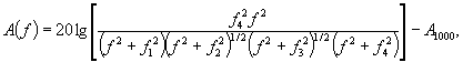 где D2, fr, fL и fH приведены в 5.4.6 и 5.4.10 При частоте среза fA из 5.4.6 полюсы характеристики на частотах f2 и f3 в герцах, необходимые для реализации дополнительных фильтров нижних частот для частотной характеристики A, должны определяться по формулам: