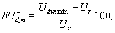 где Udyn, max(Udyn, min) - максимальное и минимальное значения соответственно, зарегистрированные при переходном процессе, выходящие за пределы допустимого значения установившегося напряжения, В; Ur - номинальное напряжение, равное при сбросе нагрузки номинальному напряжению с учетом допустимых установившихся отклонений напряжения при изменении нагрузки и при неизменной нагрузке, при набросе - номинальному напряжению. Переходные отклонения частоты δfd, %, вычисляют по формулам: