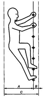 Дата введения - 2010-01-01 1 Область примененияНастоящий стандарт устанавливает размеры проемов для доступа человека к рабочим местам у машин с соблюдением требований безопасности, указанных в ЕН 292-1. Основой при расчете размеров проемов являются значения антропометрических данных, содержащиеся в ЕН 547-3, которые получены в результате статических измерений неодетых людей и не учитывают движения человека, одежду, снаряжение, специфические условия для машины, условия окружающей среды и т.п. Для обеспечения безопасности с учетом требований эргономики и вышеуказанных факторов в приложении А даны поправки, увеличивающие высоту и ширину проемов. Настоящий стандарт показывает, как антропометрические данные следует дополнять соответствующими поправками. Настоящий стандарт разработан, в первую очередь, для рабочих мест стационарных машин, для подвижных машин могут быть установлены дополнительные требования. Антропометрические данные определены из расчета 95% или 99% ожидаемого контингента пользователей. Данные из расчета 99% следует применять для аварийных выходов. Ситуации, в которых необходимо преграждать людям доступ к опасным местам, рассмотрены в ЕН 294. Настоящий стандарт применяется к машинам, изготовленным после даты его введения. 2 Нормативные ссылкиВ настоящем стандарте использованы датированные и недатированные ссылки на международные (региональные) стандарты. При датированных ссылках последующие редакции международных (региональных) стандартов или изменения к ним действительны для настоящего стандарта только введением изменений к настоящему стандарту или путем подготовки новой редакции настоящего стандарта. При недатированных ссылках действительно последнее издание приведенного стандарта (включая изменения). ЕН 292-1 Безопасность машин. Основные понятия, общие принципы конструирования. Часть 1. Основная терминология, методология ЕН 294 Безопасность машин. Безопасные расстояния для предохранения верхних конечностей от попадания в опасную зону ЕН 547-3 Безопасность машин. Размеры тела человека. Часть 3. Антропометрические данные EH 614-1 Безопасность оборудования. Эргономические принципы конструирования. Часть 1. Термины, определения и общие принципы 3 Общие требованияНастоящий стандарт устанавливает размеры проемов, соответствующие различным положениям тела человека. Чтобы получить эти размеры, необходимо к основным параметрам тела человека (антропометрическим данным) прибавить поправки, обеспечивающие человеку незатрудненный и безопасный полный доступ к машине. Следует учитывать также аспекты, специфические для оператора и условий работы. При этом особое значение имеют следующие критерии: a) возможность свободного прохода человека в зависимости от: - вида одежды, например легкая или тяжелая одежда; - ношения инструмента, например, с целью обслуживания или ремонта; - ношения дополнительного оснащения такого, как защитная одежда, средства индивидуальной защиты или переносные источники света; - требований, связанных с деятельностью, например поза, вид или скорость передвижения, условия видимости, применение силы; - частоты и длительности деятельности; - длины проходов, например проходов в виде туннелей или переходов через относительно тонкие стенки (стенки емкостей) с пространством для передвижения на выходе