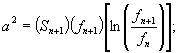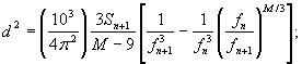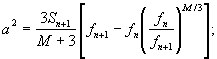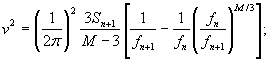 Среднеквадратичное значение ускорения, скорости или перемещения в эффективном диапазоне частот испытаний представляет собой квадратный корень из суммы средних квадратов значений этих величин в соответствующих поддиапазонах. Каждый из таких поддиапазонов определяется значением спектральной плотности ускорения S, (м/с2)2/Гц, образующих его спектральных линий на частотах fn и fn+1, Гц, шириной полосы частот между этими линиями (fn+1 - fn) и крутизной спада М, дБ/октава, спектральной плотности ускорения между соседними линиями. Ниже приведены формулы для расчета средних квадратов значений ускорения, скорости и перемещения.