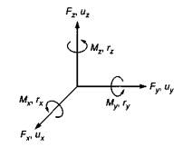 Рисунок А.1 -Декартовая система координат сил, моментов, перемещений и угловых перемещений