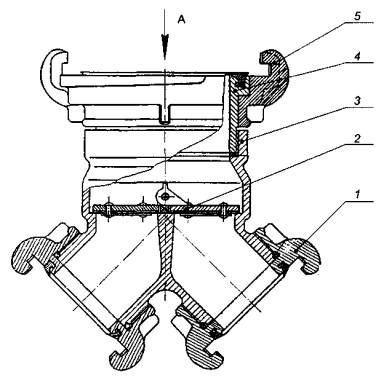 Дата введения - 2010-01-01 1 Область примененияНастоящий стандарт распространяется на водосборник рукавный (далее - водосборник), предназначенный для соединения двух потоков воды из пожарной колонки и подвода ее к всасывающему патрубку пожарного насоса. 2 Нормативные ссылкиВ настоящем стандарте использованы нормативные ссылки на следующие стандарты и классификаторы ГОСТ 2.601-95 Единая система конструкторской документации. Эксплуатационные документы ГОСТ 12.2.037-78 Система стандартов безопасности труда. Техника пожарная. Требования безопасности ГОСТ Р 15.201-2001 Система разработки и постановки продукции на производство. Продукция производственно-технического назначения ГОСТ 1583-93 Сплавы алюминиевые литейные. Технические условия ГОСТ 2991-85 Ящики дощатые неразборные для грузов массой до 500 кг. Общие технические условия ГОСТ 6357-81 Основные нормы взаимозаменяемости. Резьба трубная цилиндрическая ГОСТ 14192-77 Маркировка грузов ГОСТ 15150-69 Машины, приборы и другие технические изделия. Исполнения для различных климатических районов. Категории, условия эксплуатации, хранения и транспортирования в части воздействия климатических факторов внешней среды ГОСТ 16093-81 Основные нормы взаимозаменяемости. Резьба метрическая. Допуски. Посадки с зазором ГОСТ 16504-81 Система государственных испытаний продукции. Испытания и контроль качества продукции. Основные термины и определения ГОСТ 17756-72 Пробки резьбовые со вставками с полным профилем резьбы диаметром от 1 до 100 мм. Конструкция и основные размеры ГОСТ 17757-72 Пробки резьбовые со вставками с укороченным профилем резьбы диаметром от 1 до 100 мм. Конструкция и основные размеры ГОСТ 17763-72 Кольца резьбовые с полным профилем резьбы диаметром от 1 до 100 мм. Конструкция и основные размеры ГОСТ 17764-72 Кольца резьбовые с укороченным профилем резьбы диаметром от 1 до 100 мм. Конструкция и основные размеры ГОСТ 18925-73 Пробки резьбовые с насадками с полным профилем для трубной цилиндрической резьбы диаметром от 1 3/4" до 3 3/4". Конструкция и основные размеры ГОСТ 18926-73 Пробки резьбовые с насадками с укороченным профилем для трубной цилиндрической резьбы диаметром от 1 3/4" до 3 3/4". Конструкция и основные размеры ГОСТ 18929-73 Кольца резьбовые с полным профилем для трубной цилиндрической резьбы диаметром от 1/16" до 3 3/4". Конструкция и основные размеры ГОСТ 18930-73 Кольца резьбовые с укороченным профилем для трубной цилиндрической резьбы диаметром от 1/16" до 3 3/4". Конструкция и основные размеры ГОСТ 24705-81 Основные нормы взаимозаменяемости. Резьба метрическая. Основные размеры ГОСТ 28352-89 Е Головки соединительные для пожарного оборудования. Типы. Основные параметры и размеры. Примечание - При пользовании настоящим стандартом целесообразно проверить действие ссылочных стандартов в информационной системе общего пользования - на официальном сайте национального органа Российской Федерации по стандартизации в сети Интернет или по ежегодно издаваемому информационному указателю «Государственные стандарты», который опубликован по состоянию на 1 января текущего года, и по ежегодно издаваемым информационным указателям, опубликованным в текущем году. Если ссылочный документ заменен (изменен), то при пользовании настоящим стандартом следует руководствоваться замененным (измененным) стандартом. Если ссылочный документ отменен без замены, то по