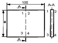 1 - образец ленты; 2 - опоры; 3 - емкость для горючего Примечание - Размеры в мм. Рисунок 1 - Приспособление для огневых испытаний поясной ленты 9.10 Метод проверки поперечной жесткости поясного ремняОтбор образцов Испытания проводят на трех образцах поясного ремня, длиной (100 ± 5) мм. Каждый из образцов в передней и задней части снабжен различительными знаками (см. рисунок 2).
