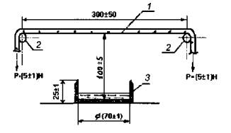 1 - образец каната (ленты); 2 - опоры; 3 - емкость для горючего