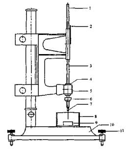 Раздел 1. Область примененияНастоящий отраслевой методический документ распространяется на вязкие дорожные нефтяные битумы (далее битумы), предназначенные в качестве вяжущего материала при строительстве, реконструкции и ремонте дорожных и аэродромных покрытий. Настоящий отраслевой методический документ устанавливает метод определения глубины проникания иглы пенетрометра в испытуемый образец битума. Сущность метода заключается в измерении глубины, на которую погружается игла пенетрометра в испытуемый образец битума при заданных рабочих параметрах испытания и выражается в единицах, соответствующих десятым долям миллиметра (0,1 мм). Раздел 2. Нормативные ссылкиВ настоящем отраслевом методическом документе использованы нормативные ссылки на следующие стандарты: ГОСТ 859-2001 Медь. Марки. ГОСТ 1440-78 Приборы для определения пенетрации нефтепродуктов. Общие технические условия. ГОСТ 2386-73 Ампулы уровней. Технические условия. ГОСТ 2060-2006 Прутки латунные. Технические условия. ГОСТ 5632-72 Стали высоколегированные и сплавы коррозионностойкие, жаростойкие и жаропрочные. Марки. ГОСТ 6613-86 Сетки проволочные тканые с квадратными ячейками. Технические условия. ГОСТ 6709-72 Вода дистиллированная. Технические условия. ГОСТ 7580-91 Кислота олеиновая техническая. Технические условия. ГОСТ 9880-76 Толуол каменноугольный и сланцевый. Технические условия. ГОСТ 14710-78 Толуол нефтяной. Технические условия. ГОСТ 15527-2004 Сплавы медно-цинковые (латуни), обрабатываемые давлением. Марки. ГОСТ 17711-93 Сплавы медно-цинковые (латуни) литейные. Марки. ГОСТ 18143-72 Проволока из высоколегированной коррозионностойкой и жаростойкой стали. Технические условия. ГОСТ 25336-82 Посуда и оборудование лабораторные стеклянные. Типы, основные параметры и размеры. Раздел 3. Термины и определенияВ настоящем отраслевом методическом документе применены следующие термины с соответствующими определениями: Пенетрация - показатель консистенции, выраженный как расстояние в десятых долях миллиметра, на которое стандартная игла вертикально проникает в пробу материала при заданной нагрузке, температуре и времени нагружения. Раздел 4. Аппаратура и реактивыа) Пенетрометр, основные размеры рабочей части которого (размеры и масса иглы, держателя, плунжера, груза) соответствуют требованиям ГОСТ 1440. Схема пенетрометра приведена на рис. а 1.