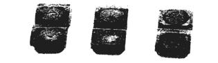 Рис. 2. Вид образцов после испытаний Испытания склеенных образцов на отрыв проводили при температуре 40°С. Эта температура соответствует температуре верхней зоны укрепленного грунта летом в реальных дорожных условиях. При такой температуре исключается разрушение по слою укрепленного грунта при испытании, так как при более низких температурах и влажности укрепленного грунта 2 - 5% адгезионные силы сцепления вяжущего с укрепленным грунтом, а также когезия вяжущего, распределенного тонкой пленкой, превышают прочность верхнего слоя укрепленного грунта на разрыв. Склеенные образцы выдерживали в течение 3 ч в термостате при температуре 40°С, а затем испытывали на разрывной машине, оборудованной специальными захватами. Напряжения, при которых пленка вяжущего отрывалась от поверхности образца или происходил разрыв по слою вяжущего, определяли по формуле
