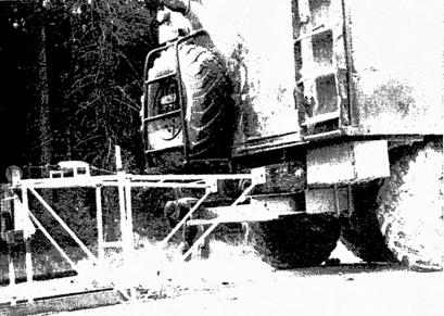 Рис. 8. Установка для определения сцепления покрытия с основанием Перед работой установка крепится неподвижно к автомобилю. Испытуемый на сдвиг образец покрытия представляет собой квадрат со стороной 15 см, выжженный паяльной лампой по периметру асбестовой накладки на всю толщину покрытия (рис. 9). Подготовленный к испытаниям образец выдерживали в течение 1 ч для остывания разогретых кромок, затем накладывали сверху на образец металлическую квадратную обойму и устанавливали опорную площадку рычага установки вплотную к одной из сторон обоймы. Для определения скорости деформации и фиксации момента сдвига с противоположной стороны обоймы крепили индикатор часового типа. Нагружение вели ступенями по 50 Н через 1 мин, что соответствует росту напряжений в плоскости раздела 0,013 МПа при соотношении плеч рычага 1:6. Момент сдвига прослеживался очень отчетливо и фиксировался при лавинообразном нарастании скорости смещения образца. Все испытания проводили без вертикальной нагрузки на образец.