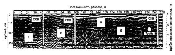 разреза объекта «Озеро», полученная георадаром «OKO-1M» с антенным блоком АБ-250: