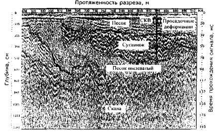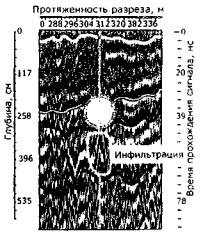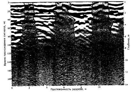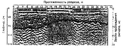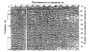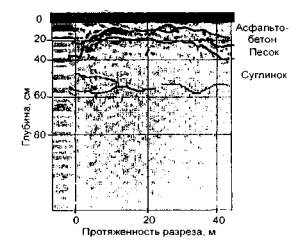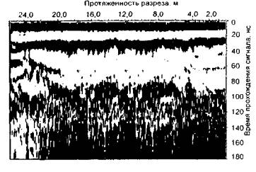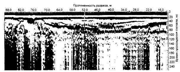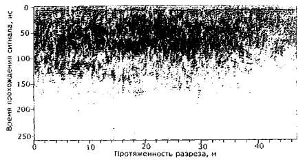Рис. 39. Радарограмма поперечного разреза грунтового основания на