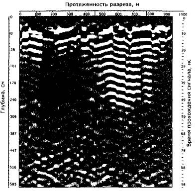 Рис. 1. Радарограмма продольного разреза
