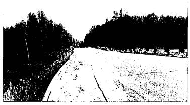 Рис. 18. Продольный разрез дорожной одежды па участие автомобильной дороги Москва - Санкт-Петербург Анализ радарограмм в поперечном направлении позволил обнаружить, что толщина слоя асфальтобетона на ряде поперечников разная. Так, в начале участка толщина слоя асфальтобетона под центральной полосой движения на 5 см больше, чем под крайними полосами. В середине участка толщина слоя асфальтобетона под центральной полосой движения на 12 см больше чем под крайними полосами, более того, под центральной полосой движения ниже слоя асфальтобетона находится старое дорожное покрытие толщиной 10-15 см. Участок 3. Краткое описание участка. В начале участка автомобильная дорога проходит через населенный пункт в низких насыпях средней высотой около 0,5 м. Три полосы движения, разделенные пунктирными линиями. На покрытии зафиксирована колея глубиной 4 см. Канавы заросли травой. В конце участка автомобильная дорога проходит через населенный пункт. Нет сплошной разделительной полосы. Земляное полотно в низкой насыпи высотой 1 м. Боковые канавы трапецеидального сечения, местами заросли травой. На левой полосе движения колея. В целом на участке, проходящем по населенному пункту, боковые канавы заилились и заросли травой и кустарником; боковые канавы выполнены на основном протяжении дороги, прерываются только местами; с правой стороны нет ни одной водоотводной канавы, с левой стороны на двух примыканиях боковые канавы примыкающих дорог выполняют функцию водоотводных канав; насыпь преимущественно проходит в нулевых отметках; на левой полосе движения колея от спаренных колес глубиной 10-15 см, местами колея просматривается и на правой полосе движения. Наблюдаются поперечные трещины. По материалам диагностики: оценка состояния покрытия 2 3 балла, коэффициент прочности 0,58-0,62, что существенно ниже требуемого; ровность 576-890 см/км, что превышает допустимое значение 540 см/км. Анализ радарограмм продольных разрезов свидетельствует, что в основании насыпи находится супесь песчанистая пластичной консистенции и суглинок легкий песчанистый; земляное полотно возведено из песка гравелистого высотой от 0,8 до 2,0 м. Уровень грунтовых вод на участке протяженностью 1,5 км зафиксирован на глубине 2,4-3,2 м от поверхности покрытия. Анализ радарограмм продольных разрезов дорожной одежды показывает, что толщина слоя асфальтобетона изменяется от 0,17 до 0,37 м; песчано-гравийной смеси - от 0,08 до 0,57 м. Из радарограмм поперечных разрезов следует, что толщины дорожной одежды и высота земляного полотна в поперечном направлении изменяются. В результате модуль упругости по разным полосам движения может быть различным. На ряде радарограмм поперечных разрезов четко просматриваются причины образования колейности за счет просадок подошвы асфальтобетона и щебня. На других участках нижние слои дорожной одежды деформировались незначительно. Участок 4. Краткое описание участка. В начале участка 3 полосы движения разделены пунктирными линиями. Насыпь имеет высоту около 1,0-1,2 м. Слева сосновый лес, справа заболоченный участок. В 10 м от насыпи, справа, застаиваются поверхностные воды на болоте. Глубокая колея от спаренных колес по полосе движения в сторону г. Москвы глубиной до 11 см, колея зафиксирована и по правой полосе движения. На покрытии наблюдаются большие неровности. Выпоры ас