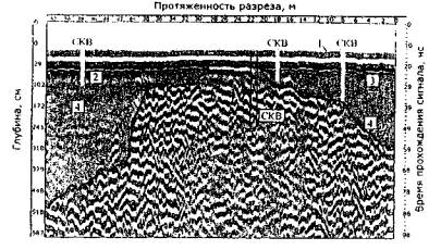 Рис. 38. Радарограмма разреза карьера «Песцовое» (Ямало-Ненецкий