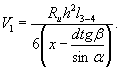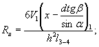 На основании многолетних натурных наблюдений за работой опор мостов и гидросооружений [1, 5, 6, 7] можно установить, что излом ледяных полей наблюдается на расстоянии 2,5-6 толщин льда. Очевидно, что меньшему значению плеча соответствует большее значение силы V1, ломающей лед. С некоторым запасом можно принять x = 3h. Величина плеча d горизонтальной составляющей H может колебаться от 0 до 0,5 h, составляя в среднем 0,25 h. Отсюда,