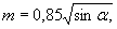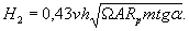 Давление льда Н2 в тоннах на опору в направлении вдоль ее оси, возникающее при воздействии льдины и последующей ее остановке, подсчитывается по формуле 5. За расчетную величину давления принимается наименьшая из подсчитанных по формулам (1*) и (2*). В этих формулах приняты обозначения: h - толщина льда, принимаемая равной 0,8 наибольшей за зимний период толщины 1 % обеспеченности, м; В - ширина опоры на уровне ледохода, м; m - коэффициент формы опоры, принимаемый равным: для полуциркульного очертания ледореза - 0,9; для треугольной формы ледореза - независимо от величины радиуса закругления его носовой части в зависимости от угла 2α заострения ледореза в плане.