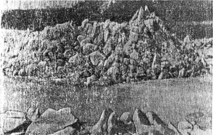 Рис. 16. Навалы льда перед перемычкой плотины Красноярской ГЭС (весна 1962 г.)