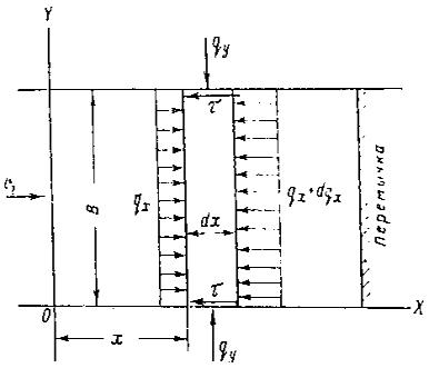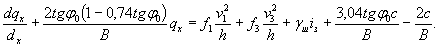 В уравнение (1) сила лобового воздействия не входит, так как она непосредственно на выделенный объем не действует, а ее эффект учитывается напряжением qx в зажорной массе. Разделив уравнение (1) на Bhdx, после преобразования получим