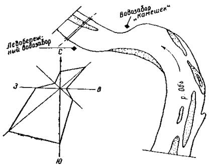 W - расчетная скорость ветра, принимаемая по П. А. Кузнецову в зависимости от площади ледяного поля (см. выше). При этом необходим детальный учет геоморфологических особенностей мостового перехода и наблюденных скоростей ветра для заданного района. Несомненно, что при узких «заливах» водохранилища, окруженных горами, т. е. при своеобразных каньонах, расчетную скорость ветра можно снизить в отдельных случаях даже вдвое, но этот вопрос должен решаться конкретно для заданных местных условий. Следует учитывать вероятное направление ветра в период возможного дрейфа, конфигурацию берегов в плане залива, высоту берегов и результат натурных наблюдений в створе мостового перехода; Ω - расчетная площадь ледяного поля, определяемая по местным условиям. При отсутствии данных можно принимать льдины примерно квадратными со стороной, равной пролету моста. В естественных условиях на реках Сибири размеры наиболее часто встречающихся крупных льдин в период ледохода составляют 1/8-1/20 ширины реки; α - угол заострения опоры в плане. Полуциркульные опоры можно принимать при расчете за треугольные с углом заострения 2α = 140°. Для снижения величины расчетных усилий, если они определяются формулой (2), целесообразно принимать на уровне ледохода заостренное очертание опор в плане. ЗАКЛЮЧЕНИЕ Внесенные предложения носят предварительный, ориентировочный характер. Поэтому крайне желательны систематические наблюдения за ледовыми условиями на вновь создаваемых водохранилищах, которые позволят уточнить предложенные рекомендации по выбору расчетных размеров льдин и пределов прочности льда. Необходима также постановка наблюдений за величиной фактического давления льда на опоры мостов. Проще всего для этого использовать разработанный в НИИЖТе кинематический способ, использованный уже более чем в 40 случаях. Фиксируя изменение скорости движения ледяного поля (при помощи киноаппарата или специальной аппаратуры), после его встречи с опорой моста возможно определить и силы взаимодействия, возникающие между сооружением и ледяным покровом. Использование этого метода, подробно описанного в литературе [1; 15, 16, 17 и др.], позволит уточнить предлагаемые приемы и обеспечить надежность возводимых сооружений без лишних запасов прочности. ЛИТЕРАТУРА 1. Коржавин К.Н. Воздействие льда на инженерные сооружения. Новосибирск, Изд-во СО АН СССР, 1962. 8. Бутягин И. П. Прочность ледяного покрова в ледовых нагрузках на сооружение. Труды ТЭИ СО АН СССР, вып. 11, Новосибирск, 1961. 10. Шафир И.Н., Гисберг Р.И. Аварии морских гидротехнических сооружений, М, 1942. 12. Шулейкин В.В. Физика моря. М., 1941. 13. Кузнецов П.А. Действие льда на сооружения морских портов и защита от него. Л., 1939. 14. Госстрой СССР. Технические условия на ледовые нагрузки на речные сооружения. СН 76-59. М., 1960. Канд. техн. наук В.М. САМОЧКИНОСОБЕННОСТИ ОБРАЗОВАНИЯ ЗАТОРОВ И ЗАЖОРОВ НА РЕКАХ СИБИРИЗимний режим рек Сибири имеет ряд особенностей, которые обусловливаются климатическими, гидрологическими, морфологическими и другими факторами. Наиболее ярко особенности ледового режима рек проявляются в периоды замерзания и вскрытия водотоков. В эти периоды в результате заторных и зажорных явлений на реках возможны высокие подъемы уровня воды и затопления больших территорий, разрушение льдом различных гидротехнических сооружений 