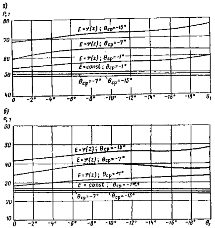 Сопоставление результатов подсчета с опытными данными [1] дает возможность принять величину Б примерно равной 2. Тогда значения коэффициентов формы опоры могут быть подсчитаны по зависимости (21) для заданных конкретных условий (см. ниже таблицу в разделе «Предлагаемый вариант новых норм»). Как видим, влияние угла заострения 2α сравнительно сильно сказывается лишь при меньших его значениях. Некоторый рост усилий Н при очень малых углах заострения может быть объяснен тем, что более острая опора быстрее внедряется в лед и в связи с этим длина карт льда, выламываемых ледорезом, соответственно увеличивается (рис. 4). Таким образом, максимальное давление может быть определено по формуле (20), которую и рекомендуется ввести в нормы.