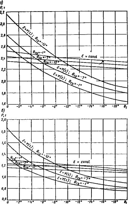 В. Расчетное давление За расчетное давление следует принять наименьшее из подсчитанных по формулам (1) и (2). Если H2 < H1 то льдина остановится у опоры, оказывая давление H2; прорезание льдины опорой будет отсутствовать. Если H1 < H2, то льдина будет прорезаться опорой при максимальном давлении Н1. Давление, определяемое по формуле (3), невелико и не может быть расчетным. Г. Расчетные параметры: m - коэффициент формы опоры, принимаемый по табл. I СН 76-59 или СН 200-62; Rp - расчетный предел прочности льда при раздроблении (с учетом местного смятия) на основании СН 76-59 и наблюдений на Новосибирском водохранилище, принимаемый равным к периоду подвижки 75 т/м2; высокого ледохода - 45 т/м2. Учитывая, что дрейф ледяных полей возможен лишь при больших разводьях (когда существенная часть ледяного покрова растает или раздробится), можно не вводить увеличение прочности для высоких горизонтов вдвое, предусмотренное СН 76-59 и СН 200-62 для северных районов СССР; В - ширина опоры на уровне ледохода, м; h - расчетная толщина льда, принимаемая на основании наблюдений на Новосибирском и Братском водохранилищах равной 0,7 наибольшей за зимний период толщины 1 % обеспеченности, м; V1 - скорость движения льдины (не более 0,6 м/сек) под влиянием ветра, определяемая по зависимости