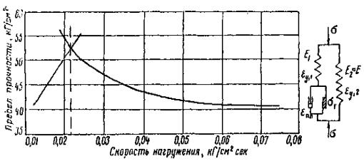 Эта формула непосредственно связывает прочность модели со скоростью ее нагружения и имеет смысл в пределах изменения скорости нагружения от любого значения первое условие прочности утрачивает свое значение. Характер разрушения должен изменяться от хрупкого к вязкому и прочность будет определяться вторым условием прочности.