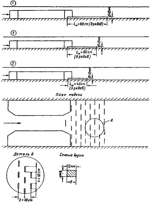 русла с повышенной шероховатостью. Бруски сечением 6×8 мм, длиной Относительная