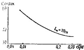 Рис. 6. Влияние относительной высоты шероховатости σ/н на степень гашения скоростей в отводящем русле при различной длине участков повышенной шероховатости Сравнивая