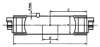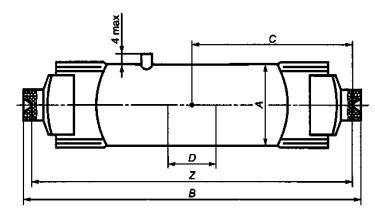 А - диаметр колбы; В - установочная длина; С - высота светового центра; D - длина дуги; Z - расстояние между контактами Примечание - Расположение откачного носика см. В.2 (приложение В). Рисунок 3 - Лампа с цоколями RX7s и RX7s-24