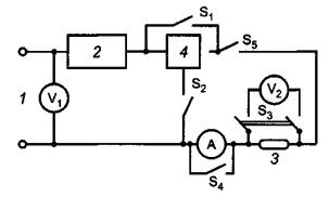 Амперметр должен быть коротко замкнут выключателем S4, а вольтметр V2 отключается выключателем S3. Выключатель S1 должен быть замкнут, а выключатель S5 - разомкнут. Напряжение, измеренное вольтметром V1, устанавливают равным напряжению холостого хода, приведенному в таблице 4.