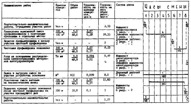 3. В график не включены работы по доставке готовой смеси и пленкообразующих материалов. Трудоемкость на эти работы определяют в зависимости от расстояния и других местных условий производства работ.