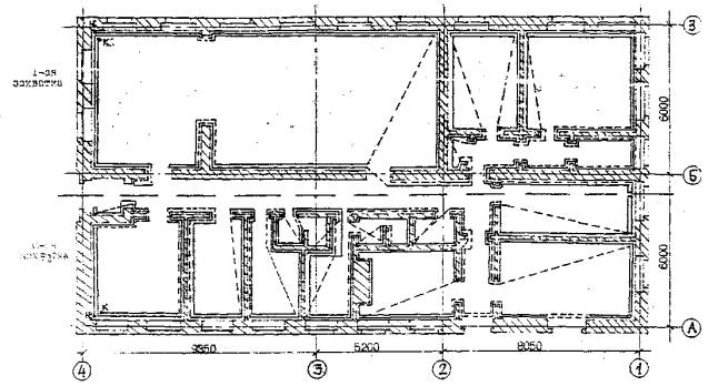 Здание поста электрической централизации разбивается на две захватки, и четыре звена каменщиков одновременно выполняют кладку. Каждые два звена выполняют кладку, двигаясь одно за другим. Схемы движения звеньев показаны на рис. 5.