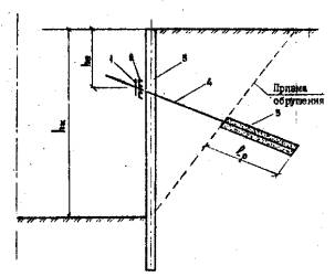 строительства ТЕХНОЛОГИЧЕСКАЯ КАРТА УСТРОЙСТВО ГРУНТОВЫХ АНКЕРОВ С ПОМОЩЬЮ ПНЕВМОПРОБОЙНИКОВ 1988 Содержание Технологическая карта разработана экспериментальным отделом Западно-Сибирского филиала ВПТИтрансстрой на основании тематического плана ВПТИтрансстрой на 1987г. и имеет целью крепление стенок котлована грунтовыми анкерами взамен трубчатых расстрелов. Технологическая карта рекомендована к применению техническим советом Зап.-Сиб. филиала ВПТИтрансстрой. Директор Зап.-Сиб. филиала ВПТИтрансстрой А.А. Федоров Заведующий отделом Г.К. Никитин Ответственные исполнители: Б.В. Корякин Ф.В. Ли ТЕХНОЛОГИЧЕСКАЯ КАРТА УСТРОЙСТВО ГРУНТОВЫХ АНКЕРОВ С ПОМОЩЬЮ ПНЕВМОПРОБОЙНИКОВ 1. ОБЛАСТЬ ПРИМЕНЕНИЯ1.1. Технологическая карта разработана на устройство грунтовых анкеров с помощью пневмопробойников ИП-4603 в скважинах диаметром 130 мм. Она может быть использована при устройстве анкеров пневмопробойниками ИП-4605 и ПР-400 (СО-134) для крепления котлованов, а также при креплении подпорных стен и других конструкций. Замковая часть анкера образована повторными проходками пневмопробойника по полусухой цементно-песчаной смеси и последующим заполнением скважины замка анкера пластичным раствором. Подачу смеси и раствора в скважину осуществляют растворонагнетателем РН-1. Тягой анкера является арматура периодического профиля, диаметр и длину которой устанавливают расчетом с учетом трещинообразования по II группе предельных состояний. 1.2. Грунтовые анкеры предназначены для крепления стенок котлованов, при строительстве подземных сооружений, подпорных и причальных стенок, автомобильных дорог и других конструкций. 1.3. Схема конструкции грунтового анкера показана на рис. 1.1. СХЕМА КОНСТРУКЦИИ ГРУНТОВОГО АНКЕРА