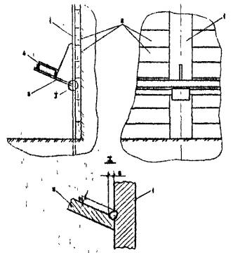 Рис. 1.1 1.4. Восстав работ, рассматриваемых технологической картой, входят: подготовительные работы; пробивка лидирующих скважин в грунте; приготовление полусухой цементно-песчаной смеси; заполнение замковой части анкера полусухой цементно-песчаной смесью; проходка пневмопробойником по смеси; установка арматурного стержня анкера в скважину; заполнение скважины пластичным раствором; натяжение анкера. Устройство и конструкция тяг и шарниров технологической картой не рассматриваются. 1.5. Работы производятся, как правило, в две смены при температуре наружного воздуха не ниже 0°С. Допускается производство работ и при отрицательной температуре окружающего воздуха, но не ниже минус 20°С. При этом необходимо руководствоваться указаниями по работе с компрессорами и пневмопробойниками в зимних условиях. Также необходимо, чтобы растворонасос эксплуатировался в условиях положительных температур, а раствор использовался с противоморозными добавками. 1.6. При привязке технологической карты к местным условиям уточняются инженерно-геологические и гидрогеологические характеристики грунтов, генплан участка с указанием существующих и строящихся сооружений, коммуникаций (водопровод, отопление, канализация, телефон и др.), данные о результатах испытаний грунтовых анкеров в аналогичных инженерно-геологических и гидрогеологических условиях. При привязке уточняются объемы работ и затраты труда, а также средства механизации. 2. ТЕХНОЛОГИЯ И ОРГАНИЗАЦИЯ СТРОИТЕЛЬНОГО ПРОЦЕССА2.1. До начала работ по устройству грунтовых анкеров целины быть выполнены следующие подготовительные работы: забиты сваи котлована до проектных отметок, или возведена "стена в грунте"; разработан и спланирован грунт (с устройством водоотвода) до отметок, обеспечивающих организацию стройплощадки и производство работ по устройству анкеров; стенки сооружения при свайной крепи закреплены затяжкой с оставлением окон для внедрения пневмопробойника; подведены к месту работ трубопроводы для воды и сжатого воздуха (при работе от стационарной компрессорной станции); размещены механизмы для приготовления и подачи раствора в скважины; размещены емкости для хранения цемента, песка, воды (при отсутствии водопровода), добавок (при работе с добавками); приварены к сваям опорные кронштейны (упорные косынки с приваренными к ним полками) с шагом, кратным шагу свай, но не менее трех по длине балки продольного пояса; уложены и приварены на полки кронштейна нижние балки пояса (рис. 2.1); уложены на грунт направляющие для стартовой площадки, выполненные из швеллера № 16; выполнены все мероприятия, обеспечивающие безопасность работ и нормальное санитарно-бытовое обслуживание работающих. 2.2. Схема организации строительной площадки в период производства работ приведена на рис. 2.2. СХЕМА МОНТАЖА НИЖНЕЙ БАЛКИ ПОЯСА