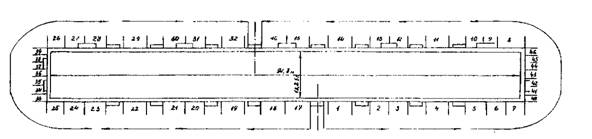 показано расположение люлек на захватках. Цифрами обозначены №№ захваток (см.