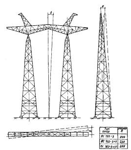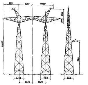 Рис. 3-1 Промежуточная свободностоящая опора типа ПС 750-1+10 ПС 750-3+10 (проект ОДП №10244 ТМ-Т6-1)