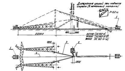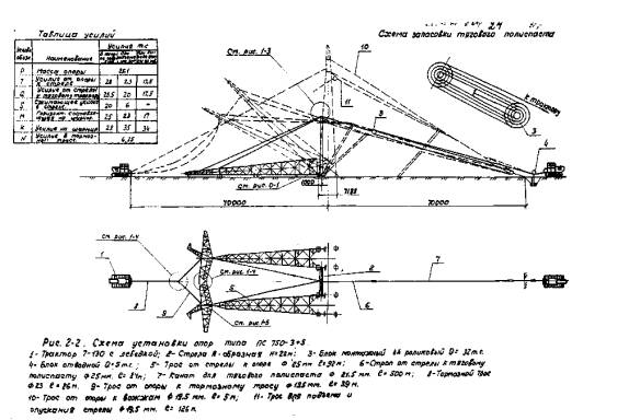 2.4. Закрепление канатов на опоре показано на рис. 1-4; 1-5; установка стрелы рис. 1-2; 1-3; схема подъема опоры рис. 3-2; допуски на выверку установленной опоры принимать по рис. 0-2.