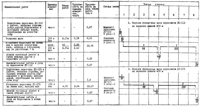Примечания: 1. Цифрой над линией указано число рабочих, под линией - продолжительность операции в минутах.