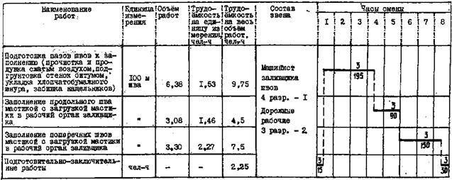 Заполнение мастикой продольного паза шва с разогреванием мастики в заливщике ДС-67, прочисткой и продувкой паза шва, подгрунтовкой стенок паза шва, удалением излишков мастики скребками |